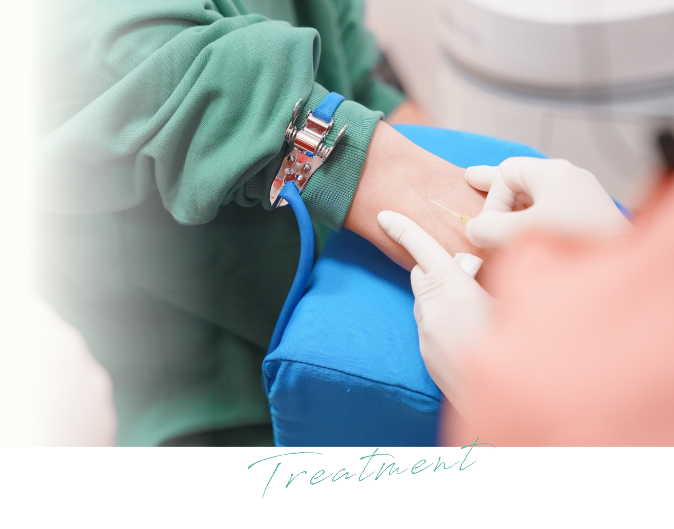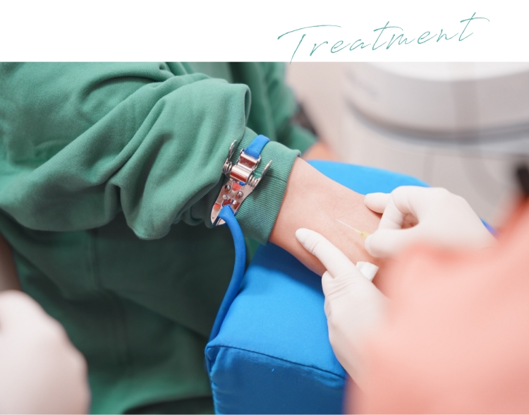 個人差がありますが、チクッとした痛みを感じる程度です。もしも点滴中に血管に痛みを感じた場合は、スタッフにお申し付けください。点滴の速度を調整させていただきます。