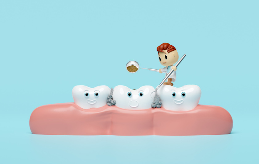 プラークは、時間が経つと硬くなり「歯石」として天然歯やインプラント表面に付着します。そして、時間が経つとブラッシングだけでは取り除くことができません。
