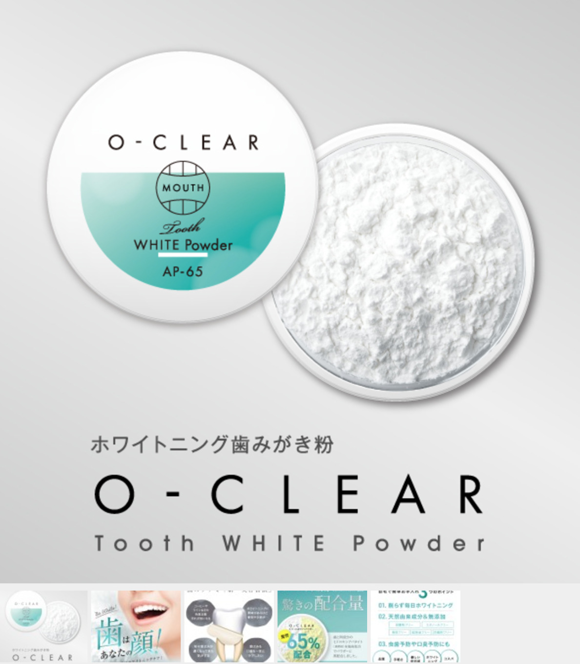 O-CLEAR(オークリア)トゥースホワイトパウダーは、自宅で毎日簡単にホワイトニングケアを行える新感覚の歯磨きパウダーです。