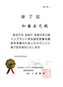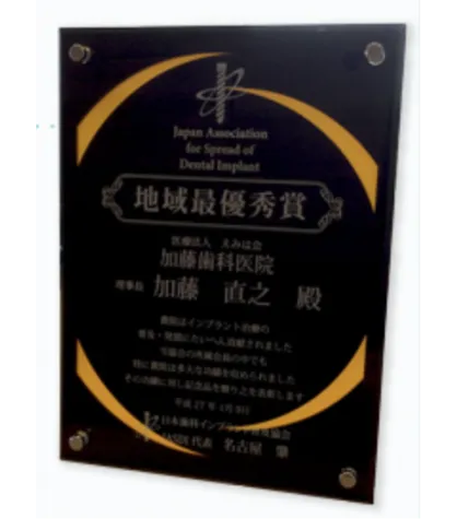 平成26年から5年連続して日本歯科インプラント普及協会の地域最優秀賞を頂きました。
