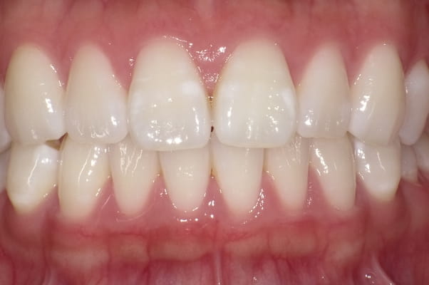 アイコンという歯を削ることなくホワイトスポットを目立たなくする薬剤を使用して治療します。治療時間は短く、前歯2本程度であれば1時間で治療が可能です。早ければ1回または2回の通院で治療が完了します。