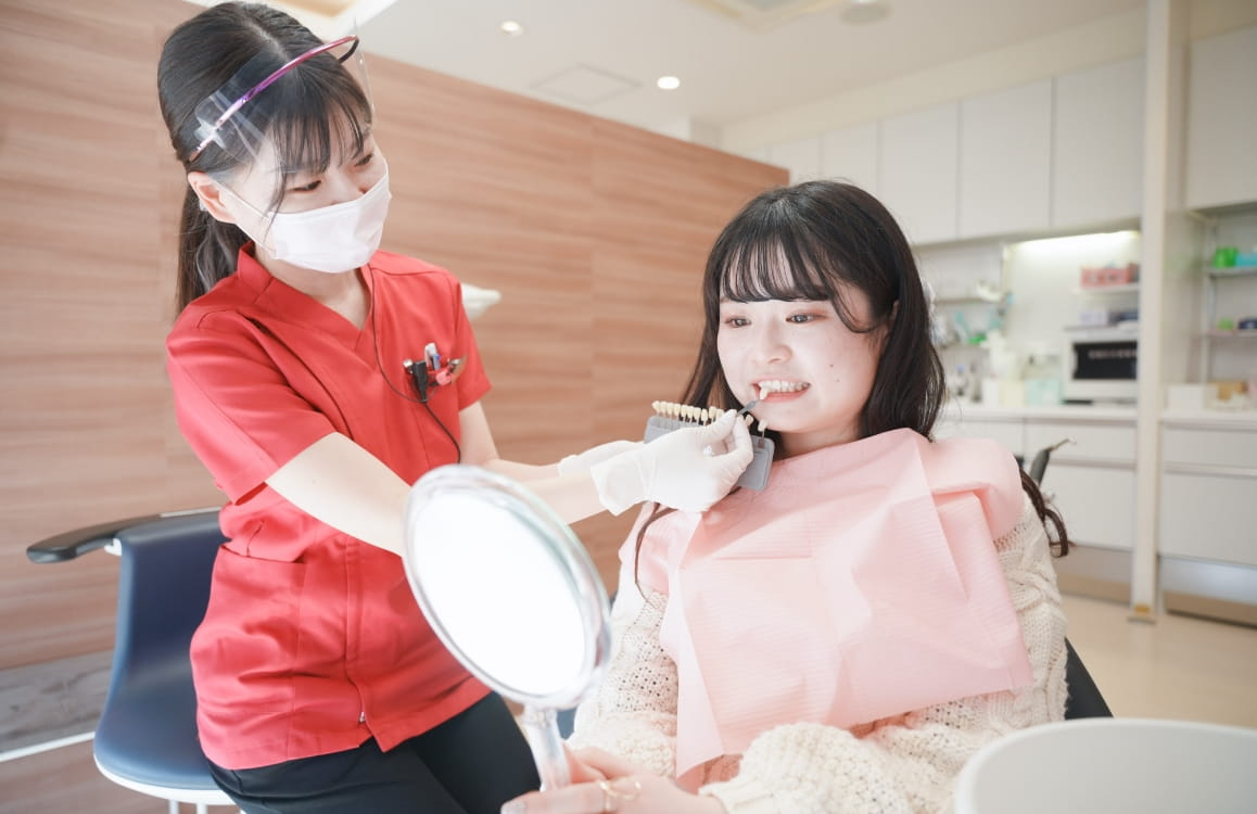 まずは歯科医師がレントゲンやお口の中を診て、現在の歯の状態を確認します。その後、患者様の希望の白さやバランスをヒヤリングして、患者様が納得できる白さを目指して施術を行います。