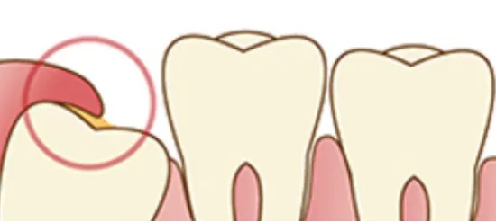 深く斜めに生えることが多く、歯の隙間の汚れや食べかすで虫歯や歯周病になることがあります。